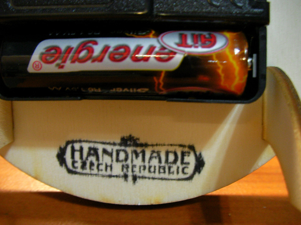 背面下方有腳架可以支撐,還有印手工製作的字樣,下面的字是捷克共和國