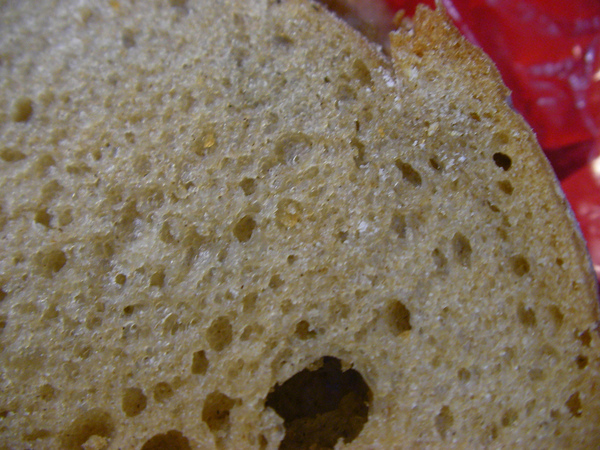 但是再回家烤過之後,剛烤好的土司酸味幾乎沒有感覺,而且麵包最外面的表面那圈會有點QQ的口感,